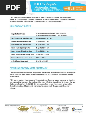 Related : Dkls Essay Competition 2018 - The dkls writing development programme aims to help students develop their writing skills in the course of eight weeks to prepare them for the dkls..
